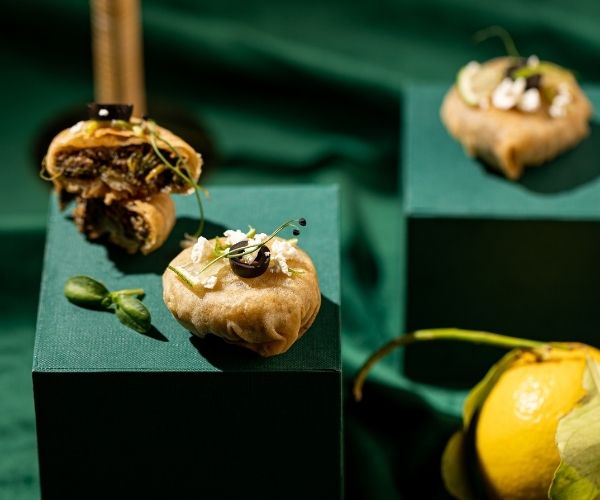 Explorez notre Mini Pastilla Fruits de Mer au Saumon, une délicieuse pastilla fourrée au saumon, crevettes et calamars, cuisinés dans une sauce au safran et citron. Chaque bouchée révèle une combinaison harmonieuse de saveurs marines, où la richesse du saumon se mêle à la délicatesse des crevettes et à la tendresse des calamars, le tout sublimé par la sauce parfumée au safran et citron. L’enveloppe croustillante ajoute une texture irrésistible à cette création culinaire. Appréciez cette option gourmande, où la simplicité des ingrédients rencontre la créativité distinctive de Lafonda.
